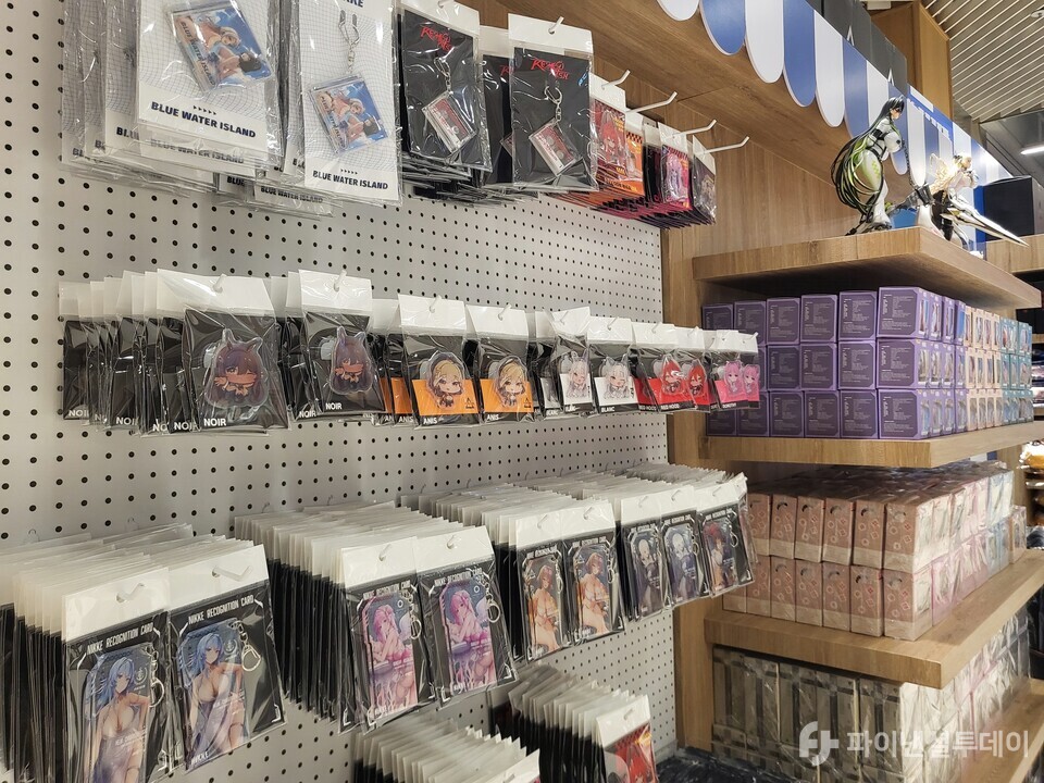 팝업스토어의 백미는 역시나 굿즈존. ▲아크릴 플레이트 ▲마우스패드 ▲AR카드 ▲A5 미니 포스터가 포함된 한정 에디션 등 무려 150여종의 여름 특별 굿즈들이 지휘관(니케 유저들을 지칭하는 표현)들을 찾아간다. 슈피겐코리아의 팬덤 IP 플랫폼 ‘페스티버’와 협업한 폰 케이스·무선 마우스 등도 한층 업그레이드된 디자인으로 만나볼 수 있다.