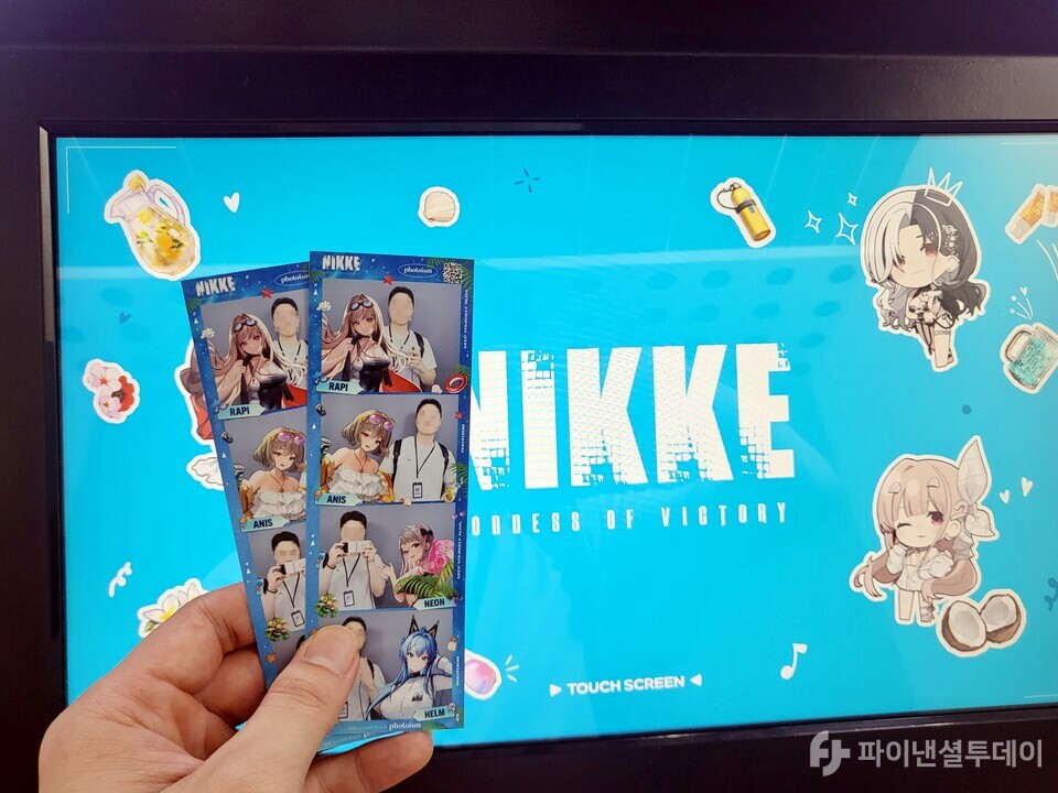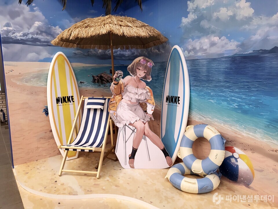굿즈존 바로 옆에는 ‘핑크 비치에서의 여름 화보’를 테마로 한 포토존이 마련됐다. 인기 니케들의 등신대와 함께 기념 사진을 촬영할 수 있으며, 특히 주말에는 ▲사쿠라(야살) ▲아니스(희야) ▲헬름(페이샤) 등으로 분한 코스어와의 포토타임이 진행된다.
