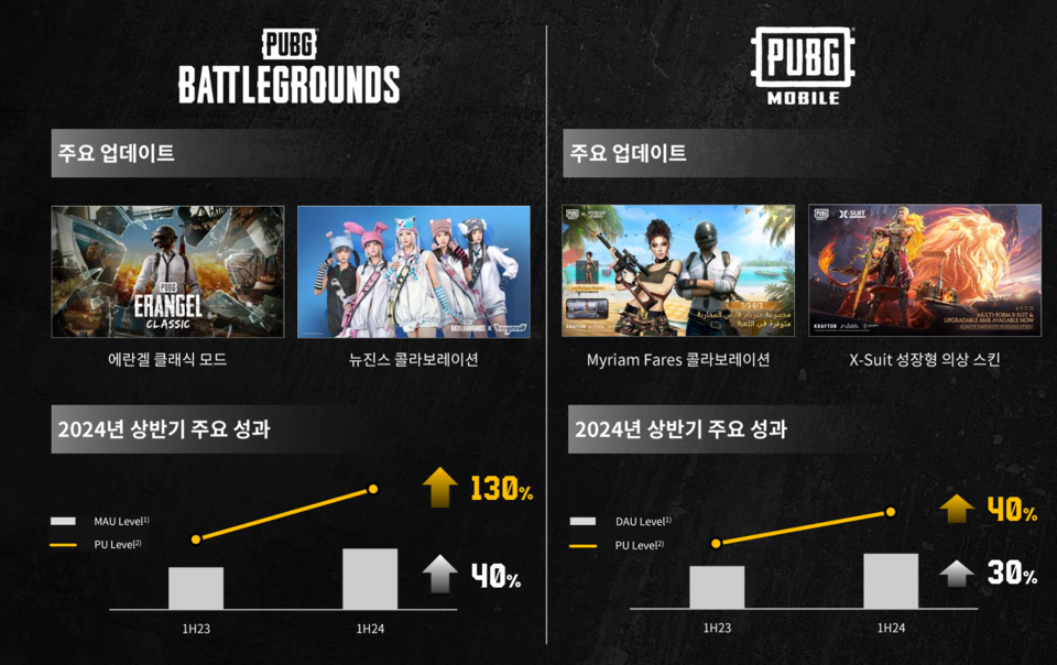 PC·콘솔 부문은 배틀그라운드 ‘에란겔 클래식’ 맵 서비스와 뉴진스 컬래버레이션을 중심으로 트래픽 상승세가 이어졌다. 월간 활성 이용자 수(MAU)는 전년 동기 대비 40%가량 성장했으며 유료 결제 이용자도 두 배 이상 늘었다.