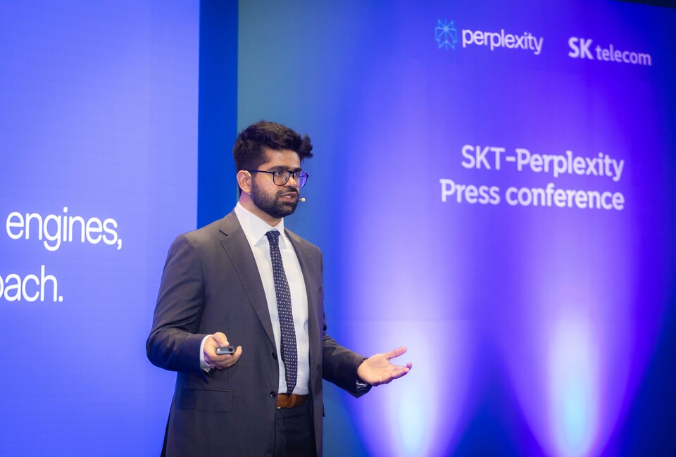 4일 서울 SK텔레콤 을지로 사옥에서는 SKT와 퍼플렉시티의 공동 국내 미디어 간담회가 개최됐다. 아라빈드 스리니바스(Aravind Srinivas) 퍼플렉시티 공동 창업자 겸 CEO는 이날 행사를 위해 처음으로 한국을 찾았다.